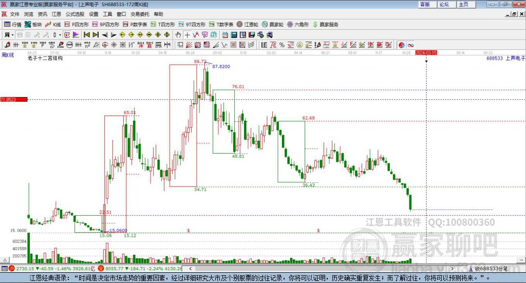 上聲電子(688533)處于贏家江恩多頭次主線形態(tài),從2月4日形成頂分型后持續(xù)下跌,重心下移,今日跌破前低形成短期初次筑頂信號,短期多頭趨勢已被破壞,中長期多頭趨勢依舊保持。上聲電子2月10日K線以上