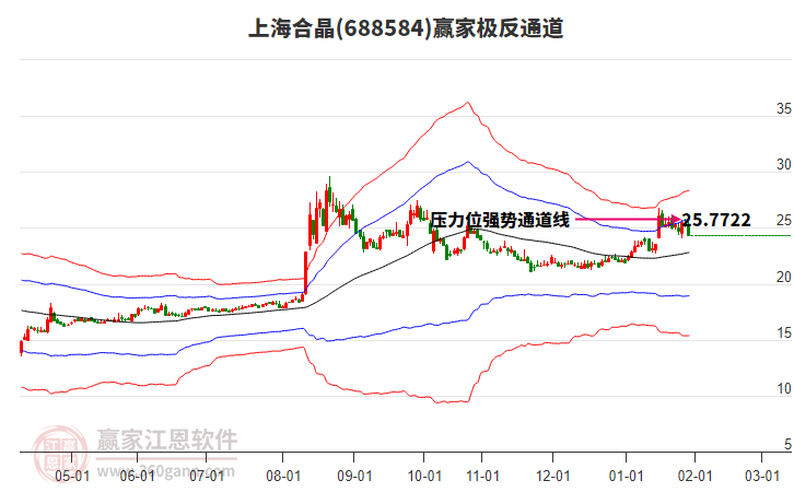 1月27日上海合晶688584最高價25.76上穿了贏家極反通道工具藍色外軌線,受到藍色外軌線強力壓制,最終收盤停留在在藍色外軌線與生命線上方的強勢通道區(qū)域。上海合晶688584近10個交易日漲幅10