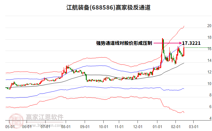 周三江航裝備最高價16.82挑戰(zhàn)了贏家極反通道工具藍色外軌線,受到藍色外軌線強力壓制,最終收盤停留在在藍色外軌線與生命線上方的強勢通道區(qū)域。江航裝備近10個交易日漲幅14.18%。