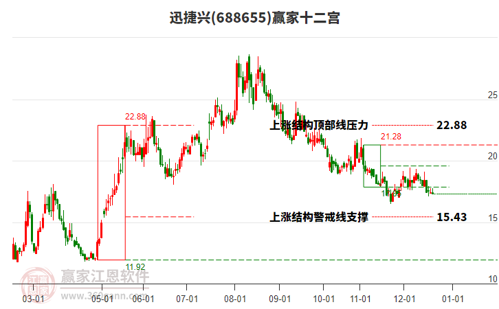 依據(jù)贏家江恩系統(tǒng)趨勢(shì)工具極反通道分析判斷迅捷興688655運(yùn)行在生命線以上強(qiáng)勢(shì)區(qū)域,根據(jù)規(guī)則該股可短線、波段結(jié)合操作;結(jié)合物極必反的原理通過(guò)分鐘圖做盤(pán)中差價(jià),應(yīng)用口訣是:生命線上強(qiáng)勢(shì)走,生命線下難抬頭;紅黃兩條外軌線,壓力支撐顯勢(shì)頭。