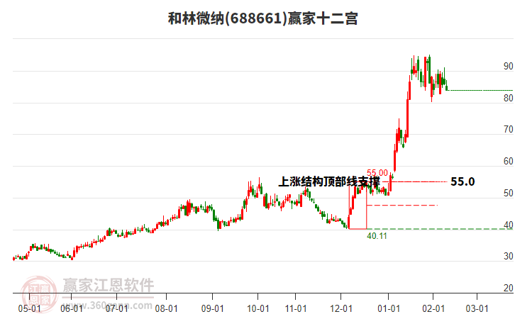 依據(jù)贏家江恩系統(tǒng)趨勢(shì)工具極反通道分析判斷和林微納688661運(yùn)行在生命線以上強(qiáng)勢(shì)區(qū)域,根據(jù)規(guī)則該股可短線、波段結(jié)合操作;結(jié)合物極必反的原理通過分鐘圖做盤中差價(jià),應(yīng)用口訣是:生命線上強(qiáng)勢(shì)走,生命線下難抬頭;紅黃兩條外軌線,壓力支撐顯勢(shì)頭。