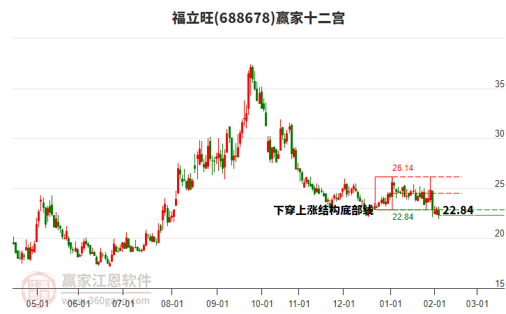 688678福立旺處于贏家江恩多頭次主線形態(tài),從1月29日形成頂分型后持續(xù)下跌,重心下移,今日跌破前低形成短期初次筑頂信號(hào),短期多頭趨勢(shì)已被破壞,中期多頭趨勢(shì)延續(xù),但長(zhǎng)期處于回調(diào)中。福立旺今日低開(kāi)后持
