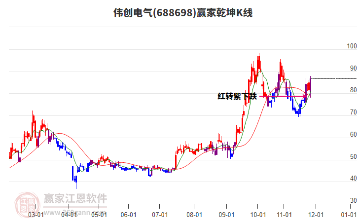 偉創(chuàng)電氣(688698)處于贏家江恩多頭主線形態(tài),10月13日發(fā)出江恩筑頂信號后,經(jīng)過57日,今日再次發(fā)出江恩底分型并發(fā)出江恩筑底信號,中長期多頭趨勢依舊保持。偉創(chuàng)電氣今日低開,截止目前小幅上漲2.3