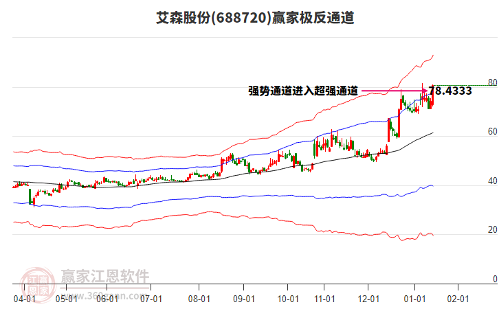 依據(jù)贏家江恩系統(tǒng)趨勢(shì)工具極反通道分析判斷艾森股份688720運(yùn)行在生命線以下弱勢(shì)區(qū)域,根據(jù)規(guī)則該股短線輕倉(cāng)參與,股價(jià)跌至弱勢(shì)外軌線后波段再結(jié)合其它工具信號(hào)建倉(cāng)。應(yīng)用口訣是:生命線上強(qiáng)勢(shì)走,生命線下難抬頭;紅黃兩條外軌線,壓力支撐顯勢(shì)頭。