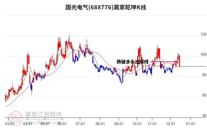 688776國光電氣處于贏家江恩多頭次主線形態(tài),12月4日發(fā)出江恩筑底信號后,經(jīng)過69日,今日形成短期筑頂信號,短期多頭趨勢已被破壞,中期雖然處于回調(diào)中,但長期多頭趨勢延續(xù)。國光電氣截至目前K線為上下