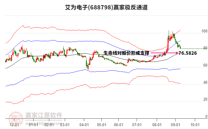 依據(jù)贏家江恩系統(tǒng)趨勢(shì)工具極反通道分析判斷艾為電子688798運(yùn)行在生命線以上強(qiáng)勢(shì)區(qū)域,根據(jù)規(guī)則該股可短線、波段結(jié)合操作;結(jié)合物極必反的原理通過分鐘圖做盤中差價(jià),應(yīng)用口訣是:生命線上強(qiáng)勢(shì)走,生命線下難抬頭;紅黃兩條外軌線,壓力支撐顯勢(shì)頭。