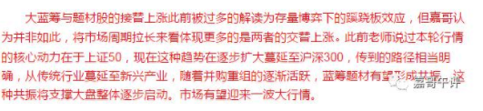 老師在6月20日的文章《驚人跡象暗示 A股大行情或?qū)㈤_(kāi)啟》中詳細(xì)寫(xiě)到過(guò)藍(lán)籌與題材股的接替現(xiàn)象可能孕育著新行情的起點(diǎn):
