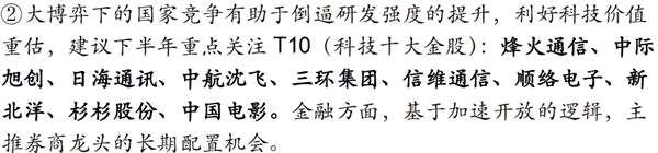 科技股是”新經(jīng)濟(jì)”重要祖成部分,光大證券也推出了下半年十大科技金股: