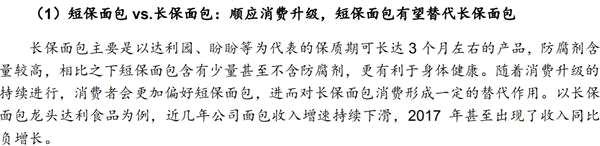 在西南證券研報中發(fā)現(xiàn),長保面包指的是長達3個月左右的產(chǎn)品,防腐劑含量高不利健康,行業(yè)也在萎縮。