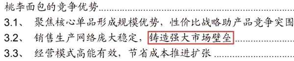 強大市場壁壘的描寫。其實主要指的是桃李面包特大鮮明的兩大競爭優(yōu)勢: