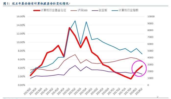 摘要: 最近伴隨著大盤的反彈,以中國軟件(600536)、用友網(wǎng)絡(luò)(600588)為龍頭的計算機個股迎來了一波強勢上漲。上周基金二季報持倉披露完畢,計算機板塊持倉占基金總持倉比重持續(xù)回升(4.46%),已超出