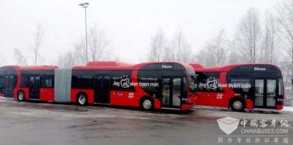 在挪威奧斯陸運(yùn)營(yíng)的比亞迪18米純電動(dòng)鉸接車