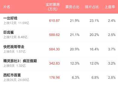 公開信息顯示,《一出好戲》是由上海瀚納影視文化傳媒有限公司、北京光線影業(yè)有限公司、霍爾果斯春天融和傳媒有限公司、霍爾果斯樂開花影業(yè)有限公司、北京英邁策源文化傳媒有限公司等聯(lián)合出品,黃渤自導(dǎo)自演,王寶強、舒淇、張藝興、于和偉、王迅聯(lián)袂主演。電影于8月10日正式在全國公映,截止到8月20日,累計票房已達11.59億,連續(xù)十天單日票房第一,票房持續(xù)走高。