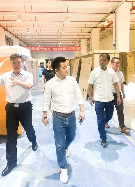 ▲鴻特科技董事長張林視察“小黃狗”生產車間