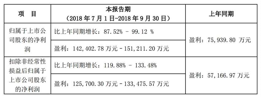 據(jù)寧德時(shí)代公告,公司預(yù)計(jì)2018年第三季度實(shí)現(xiàn)歸屬于上市公司股東凈利潤(rùn)14.24億元-15.12億元,扣除非經(jīng)常性損益后凈利潤(rùn)為12.57億元-13.35億元,同比增長(zhǎng)119.88%-133.48%。今年Q1、Q2公司扣非凈利潤(rùn)分別為2.69億元和4.28億元,相比來(lái)看Q3公司單季度業(yè)績(jī)大幅改善。