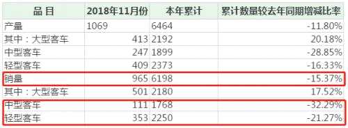 截至2018年11月底,安凱客車累計銷售客車6198輛,同比下降15.37%;其中,中型客車累計銷售1768輛,同比下降32.29%;輕型客車累計銷售2250輛,同比下降21.27%。