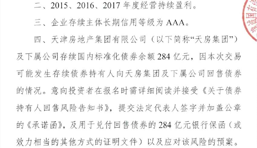 天房集團(tuán)在其掛牌文件中要求,意向投資者需提供284億元銀行保函(或效力相當(dāng)?shù)钠渌绞降淖C明文件),以保障天房集團(tuán)的兌付存續(xù)能力。