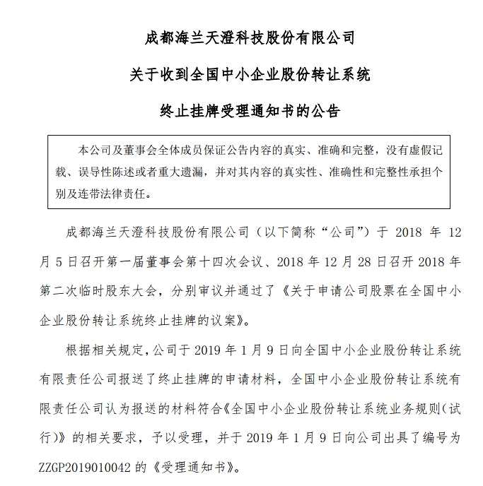 海蘭天澄,公司,摘牌,已經(jīng),三年