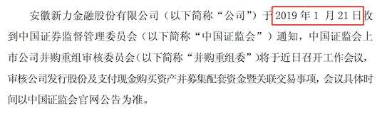 摘要: 訊新力金融(600318)(維權(quán))1月23日發(fā)布一則更正公告,公告稱,公司于2019年1月22日收到證監(jiān)會(huì)通知,證監(jiān)會(huì)并購重組委將于近日召開工作會(huì)議,審核公司發(fā)行股份及支付現(xiàn)金購買資產(chǎn)并募集配套資金暨