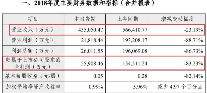 長江證券公告顯示,2018年公司實(shí)現(xiàn)營收43.51億元,同比降23.19%;實(shí)現(xiàn)歸屬上市公司凈利潤2.59億元,同比去年的15.45億元,大幅下降83.23%。