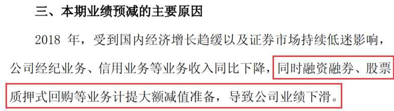 相關(guān)券商在2018業(yè)績快報(bào)中表示,計(jì)提減值準(zhǔn)備增加,是造成去年業(yè)績下滑的主要原因之一。其中長江證券去年凈利潤同比大降83.23%,方正證券凈利潤同比大降50-60%。