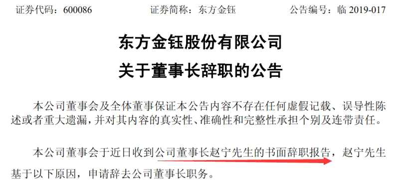 與此同時(shí),趙寧還宣布辭去東方金鈺董事長一職。