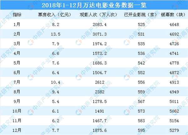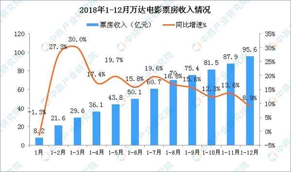2018年1-12月萬達(dá)電影經(jīng)營(yíng)數(shù)據(jù)簡(jiǎn)報(bào):票房收入超95億元 增長(zhǎng)8.9%