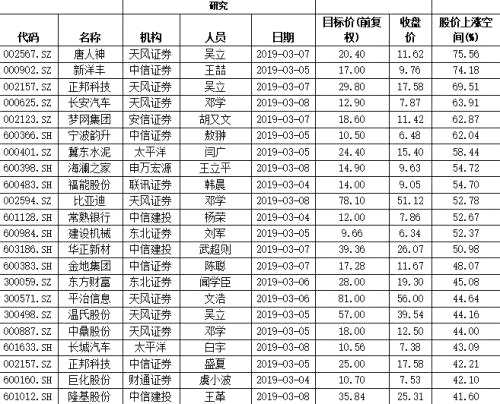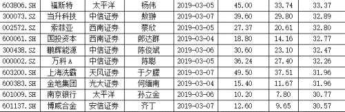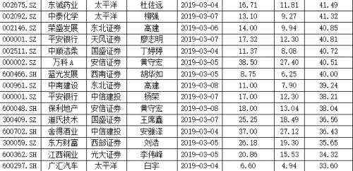 本周A股沖高回。其中,滬指一度沖至3129.94點的近9個月新高,創(chuàng)業(yè)板指1719.15點的近8個月新高,不過周五大幅度回吐。截止周五收盤,滬指周累計跌0.81%;深成指漲2.14%;創(chuàng)業(yè)板指漲5.52%。此前市況向好,加之年報披露正如持續(xù)展開,券商研究員紛紛根據(jù)相關(guān)公司的業(yè)績預(yù)告等,對上市公司的投資評級及目標(biāo)價進(jìn)行“修正”。據(jù)【同花順(300033)、股吧】(行情300033,診股)iFinD統(tǒng)計數(shù)據(jù)顯示,本周(3月4日至8日)券商給予77家公司“買入”評級。給出具體目標(biāo)價的公司中,42家公司周五收盤價距券商研究員給出的目標(biāo)價還有逾三成的上漲空間。