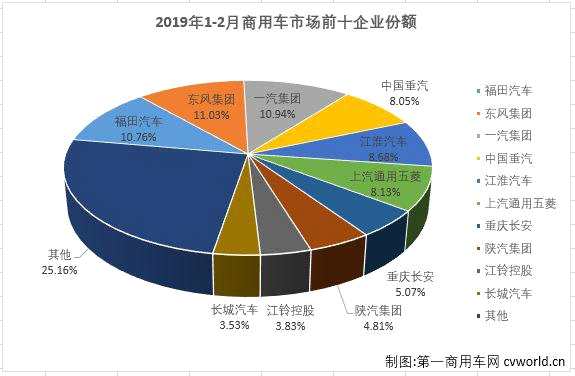 從市場(chǎng)份額來看,銷量前十企業(yè)2月份合計(jì)份額達(dá)到75.64%,排名前五的企業(yè)合計(jì)份額就達(dá)到48.86%。2月份排名首位的【福田汽車(600166)、股吧】(600166)份額為11.21%,僅比排名第二的東風(fēng)集團(tuán)僅高出0.4%,前五位的距離均未能拉開,商用車市場(chǎng)競(jìng)爭(zhēng)很激烈。