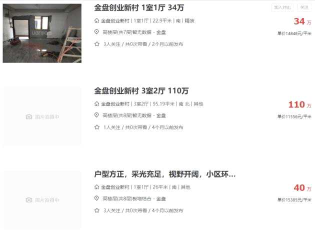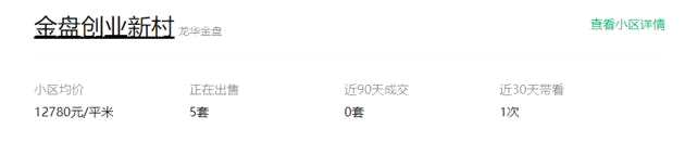我們在鏈家網(wǎng)看到,金盤創(chuàng)業(yè)新村的房屋單價在1.3萬元/㎡左右。