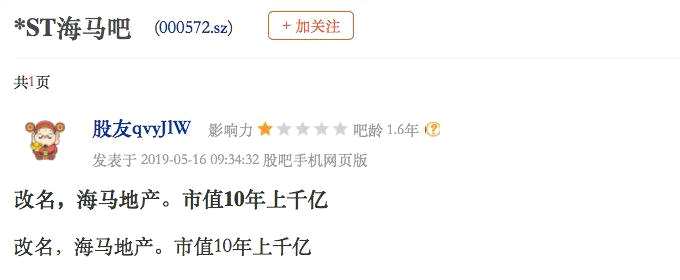 對此,有網(wǎng)友調(diào)侃說:改名,海馬地產(chǎn)。市值10年上千億。