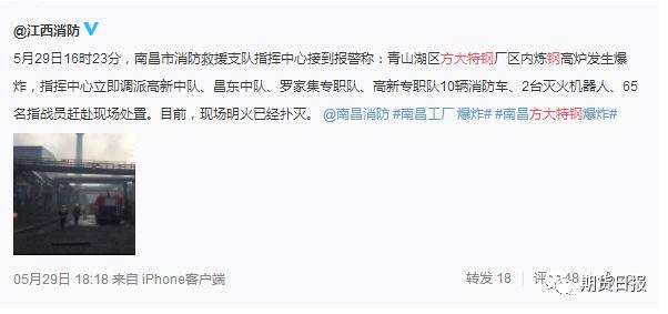 摘要: 29日下午,有位焦化行業(yè)人士在群里發(fā)信息稱,方大特鋼(600507)發(fā)生爆炸了。有人問道,有無人員傷亡?就是到年底給員工發(fā)巨額紅包,其他鋼廠員工都羨慕的方大特鋼嗎?該人士稱,作為一個從未虧過錢、201
