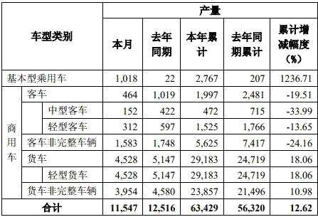 東風(fēng)股份5月份產(chǎn)量數(shù)據(jù)如下:
