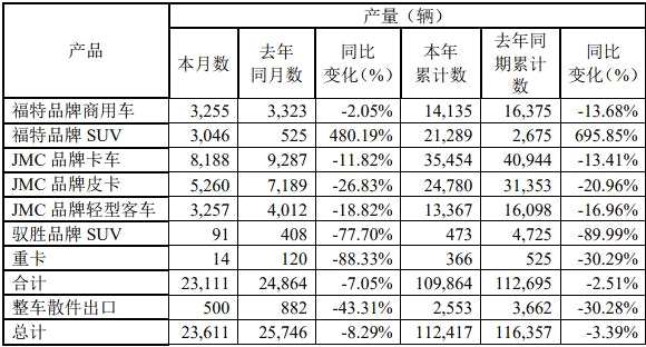 江鈴2019年5月產(chǎn)量數(shù)據(jù)如下: