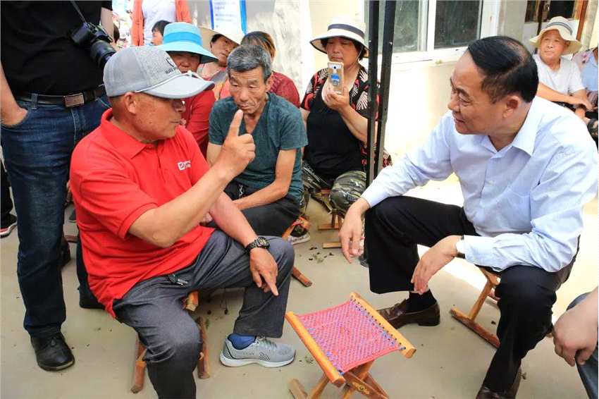 萬連步董事長與當(dāng)?shù)赜吞曳N植戶交流作物種植管理技術(shù)