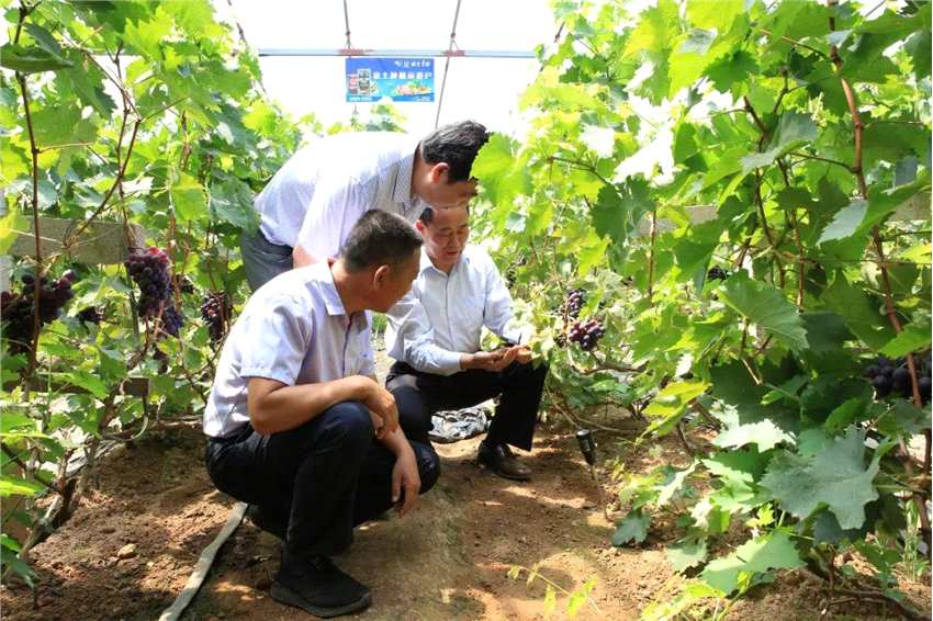 在現(xiàn)場,諸葛玉平、萬連步品嘗了親土種植示范田的葡萄,指導(dǎo)示范戶還需重視前期底肥沖施和后期的管理,可使葡萄的甜度、著色等得到進(jìn)一步提高。