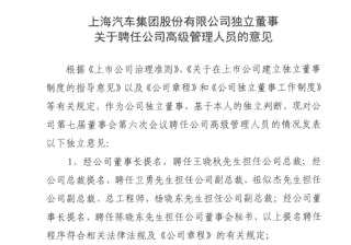 上汽集團(tuán):陳志鑫因到齡退休 王曉秋接任公司新總裁
