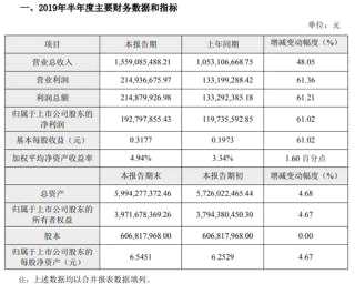 報(bào)告期內(nèi),公司實(shí)現(xiàn)營(yíng)業(yè)收入155,908.55萬(wàn)元,較上年同期增長(zhǎng)48.05%;實(shí)現(xiàn)歸屬于上市公司股東的凈利潤(rùn)19,279.79萬(wàn)元,較上年同期增長(zhǎng)61.02%;實(shí)現(xiàn)歸屬于上市公司股東的扣除非經(jīng)常性損益的凈利潤(rùn)21,797.52萬(wàn)元,較上年同期增長(zhǎng)110.66%。