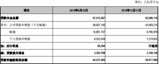2019年上半年,江陰銀行貸款本金總額為675.12億元,截至2018年末為629.86億元;貸款和墊款賬面余額為642.37億元,截至2018年末為598.18億元。