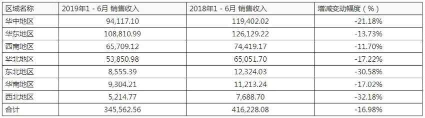 上半年,養(yǎng)元飲品的經(jīng)銷商渠道銷售收入同比下滑17.48%,七大區(qū)域經(jīng)銷商渠道全線下滑。