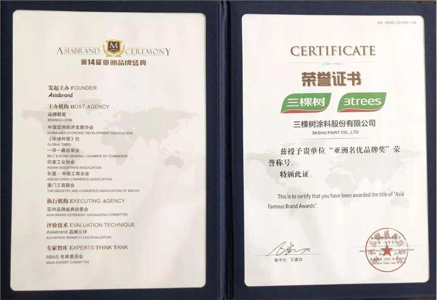 9月9日,“第14屆亞洲品牌盛典”在深圳舉辦,【三棵樹(603737)、股吧】(603737)獲評“亞洲名優(yōu)品牌獎”,三棵樹董事長兼總裁洪杰先生獲評“新時代中國品牌創(chuàng)新人物”稱號。