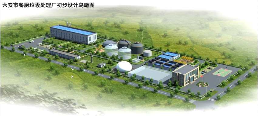 “六安市餐廚垃圾處理特許經營項目”一期建設規(guī)模為100t/d的餐廚垃圾處理設施(另含地溝油20t/d),二期建設規(guī)模為100t/d。總投資約1.09億元人民幣,單噸補貼價格為335元,特許經營年限為27年(含建設期2年),項目采用“預處理+厭氧發(fā)酵+沼氣綜合利用”為主體工藝。