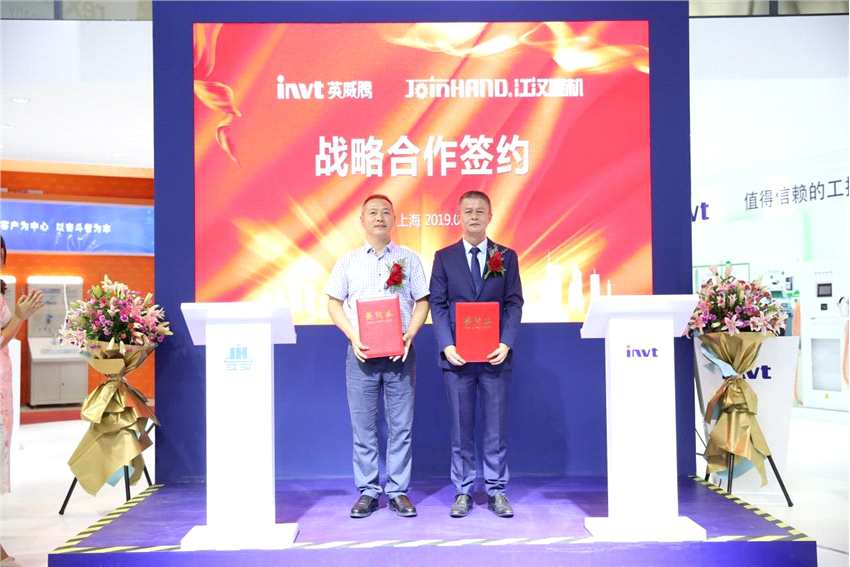 摘要: 2019年9月17日下午,深圳市英威騰(002334)電氣股份有限公司與湖北江漢建筑工程機械有限公司戰(zhàn)略合作簽約儀式在英威騰工博會展臺隆重舉行。英威騰集團總裁兼董事長黃申力先生與江漢建機總經(jīng)理黃保忠先