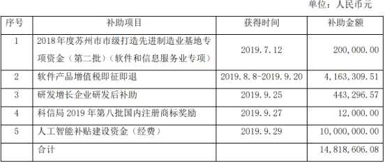 9月30日,麥迪科技(603990)(證券代碼:603990)及全資子公司中科麥迪人工智能研究院(蘇州)有限公司于2019年7月12日至本公告披露日,累計收到各類政府補助資金1,481.86萬元(未經(jīng)審計),占公司最近一個會計年度經(jīng)審計凈利潤的26.91%。具體明細情況如下: