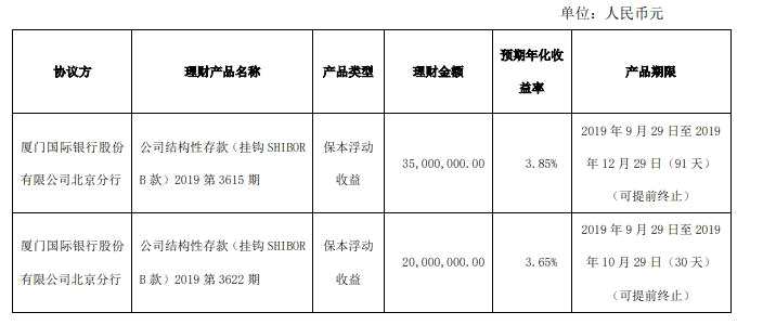 10月1日,嘉友國際(603871)今日發(fā)布公告,2019年9月29日,公司使用閑置募集資金總計人民幣85,000,000.00元,向廈門國際銀行股份有限公司北京分行購買了結(jié)構(gòu)性存款產(chǎn)品。