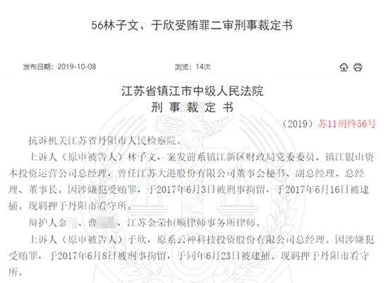 大港股份原董事長(zhǎng)林子文獲刑7年 其親信收600萬(wàn)回扣