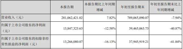 報告顯示,安納達第三季度實現(xiàn)營收281,062,421.02元,同比增長7.82%;實現(xiàn)歸母凈利潤13,847,323.63元,同比下降12.58%。