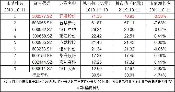 截至10月11日收盤,開潤股份市值近71億元,位列行業(yè)第一,當(dāng)日市值下挫0.58%,行業(yè)平均下挫1.74%。下表是行業(yè)內(nèi)上市公司市值變化情況明細(xì):