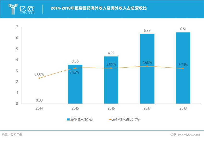 恒瑞醫(yī)藥是首個(gè)在美國獲批生產(chǎn)注射劑的國內(nèi)企業(yè),從2011開始布局海外業(yè)務(wù),產(chǎn)品覆蓋腫瘤、麻醉、鎮(zhèn)痛等多個(gè)領(lǐng)域;加大海外制劑銷售的同時(shí),積極與美國公司保持緊密合作,成功洽談JAK1、BTK腫瘤治療靶向抑制劑,多個(gè)創(chuàng)新藥在海外開展臨床試驗(yàn)。與此相應(yīng)的,恒瑞海外銷售額在穩(wěn)步增長。