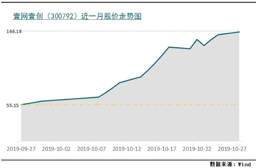 自壹網(wǎng)壹創(chuàng)上市以來(lái),股價(jià)一直以暴漲的態(tài)勢(shì)飆升。截至10月28日晚收盤(pán),壹網(wǎng)壹創(chuàng)上市短短一個(gè)月內(nèi),股價(jià)從最初的38.3元連續(xù)上漲至166.18元,股價(jià)漲幅高達(dá)333.89%,總市值約為133億元,市值翻了四倍左右。而在瘋狂飆升的股價(jià)背后,壹網(wǎng)壹創(chuàng)也暗藏隱憂,公司市值被嚴(yán)重高估。